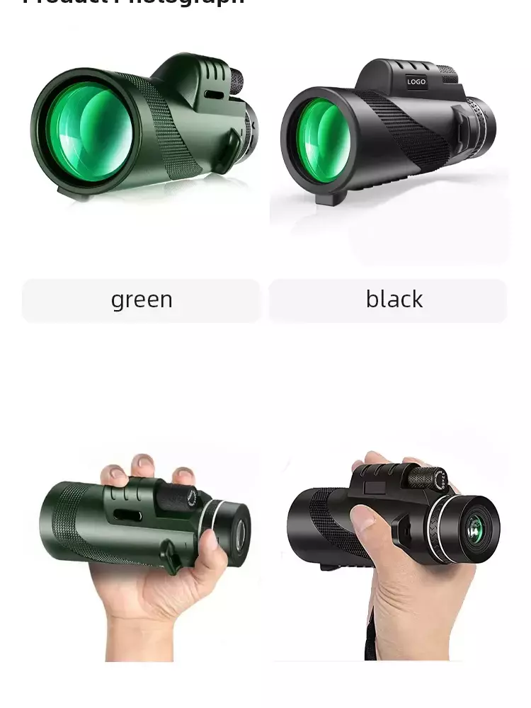 Explore o mundo com precisão usando o Telescópio Monocular Dobrável 80×100 Zoom HD 5000 m. Compacto, leve e robusto, ele é ideal para observação de natureza, esportes, trilhas, caça ou acampamentos. Com lente objetiva de 15 mm, prisma BAK4 e revestimento FMC, ele oferece imagens nítidas até mesmo com pouca luz. À prova d'água (IPX4), é confiança e desempenho em qualquer aventura.